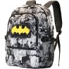 Mochila del superhéroe murciélago batman. El color principal es el negro y tiene toda la superficie con estampados. Se cierra con cremalleras. Tiene dos asas acolchadas y regulables para llevar en la espalda y un asa de mano. Un bolsillo exterior con cremallera. Un compartimento en su interior. Tiene un pequeño detalle bordado sobre la superficie. Las medidas aproximadas son 45x30x18 cm. Este producto licenciado es oficial y 100% original.